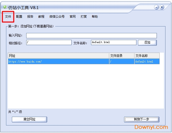 点击菜单栏的“文件”,PC站选择“下载普通网站”,手机站选择“下载手机网站”。