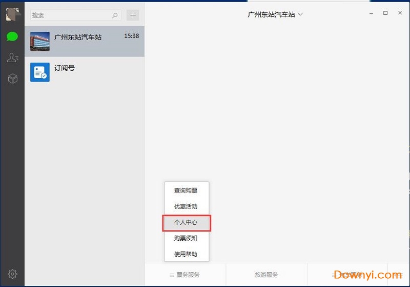 1、登录微信电脑版,进入微信公众号“广州东站汽车站”,在页脚中找到个人中心,如下图。