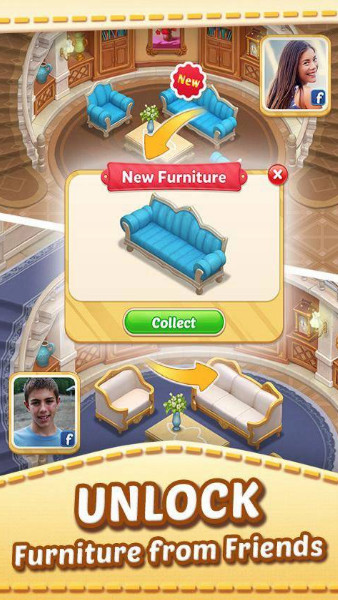 《马其顿大厦》是一款融合经营,消除,装扮等多种玩法元素的卡通画风休闲手游,游戏中玩家可以挑战三消关卡来收集资源,购买家具和材料来装潢自己的家,打造个性居所!