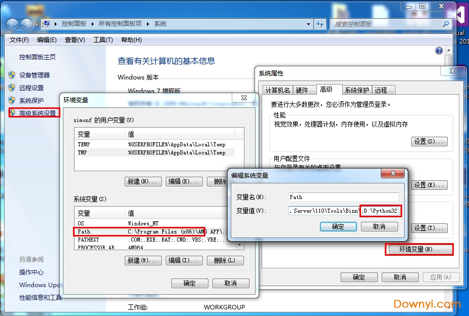 1、在环境变量中添加Python目录: