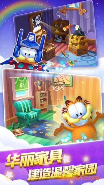 3.特色养成玩法,与加菲猫欢乐互动。