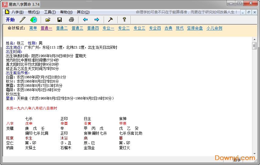 —输出的八字命状格式可任意修改,具体修改方法见帮助文件,软件主页提供命状下载。