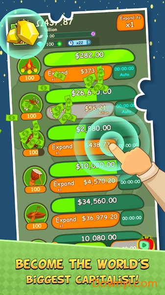 在此空闲游戏中,你需要做的唯一的事情就是点击,点击,点击,然后看你的资金迅速增长。