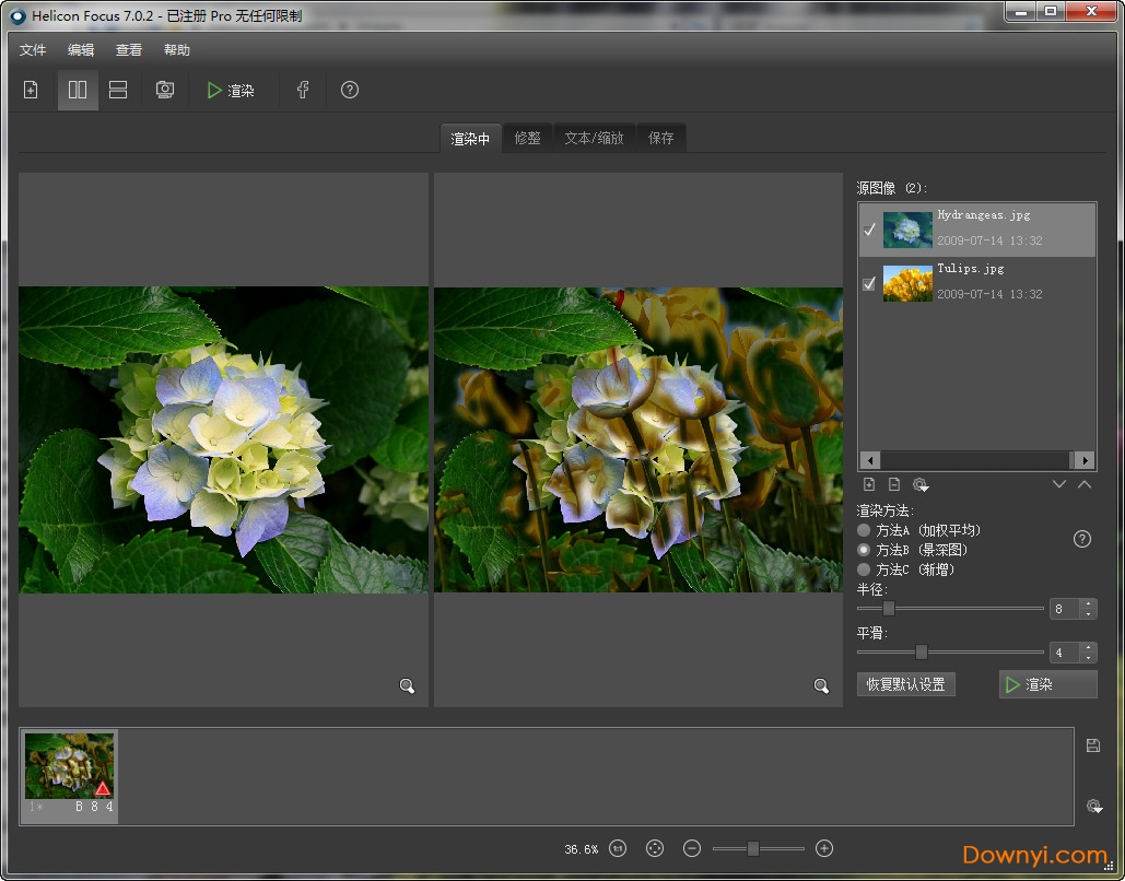 helicon focus中文修改版是一款极其受用户好评的电脑图像编辑软件,主要具备图像聚焦的功能,几乎支持所有图片格式,能够解决浅景深等问题,可谓是摄影爱好者的必备,当易网提供安装、修改以及使用教程,欢迎前来下载!