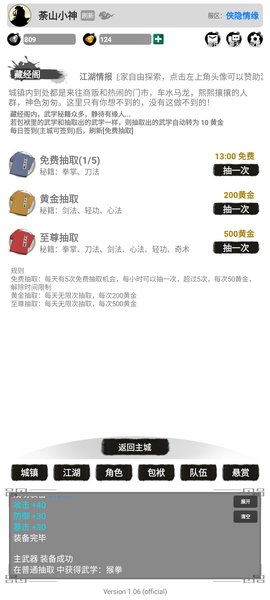 1、游戏中的武功秘籍有上百种,门派也有十几个,你可以自由的加入学习;
