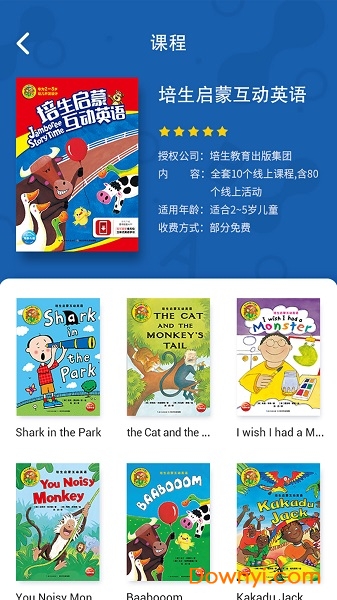 一套专为儿童精心设计的英语互动学习软件。主要将《培生启蒙互动英语》图书中的重点单词、句子、故事等内容以趣味互动的方式展现出来。生动有趣的外教课堂,韵律十足的英语儿歌,丰富多样的互动方式,让儿童边玩边学,寓教于乐。