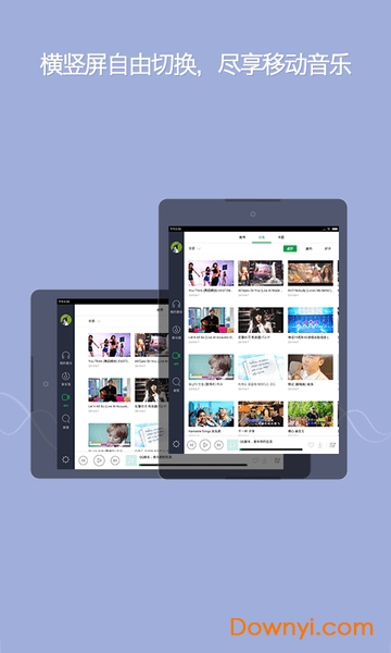 1、横竖屏自由切换,尽享移动音乐