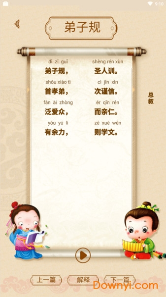 国学经典弟子规,标准普通话朗诵,全文加拼音展示,后期还会陆续加入唐诗等内容。