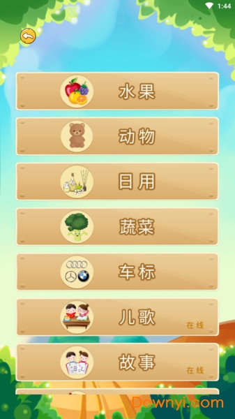 是一款儿童早教软件,包含认识水果、认识蔬菜、认识动物等(更多内容持续增加中),每种物品都有相应的图片和标准普通话真人发音,应用包含考考你功能,通过读一读、选一选、连一连几种方式,增加宝宝学习的乐趣,让宝宝轻松快乐的学习启蒙知识。