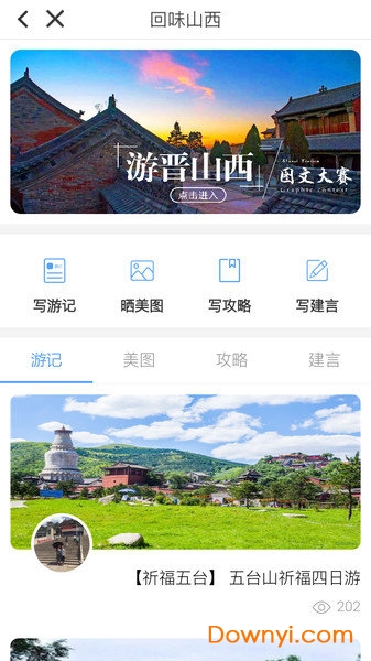 山西文旅厅官方旅游app,为前来山西的游客提供具有山西特色的游玩指南,查看景区、线路、攻略等旅游服务。