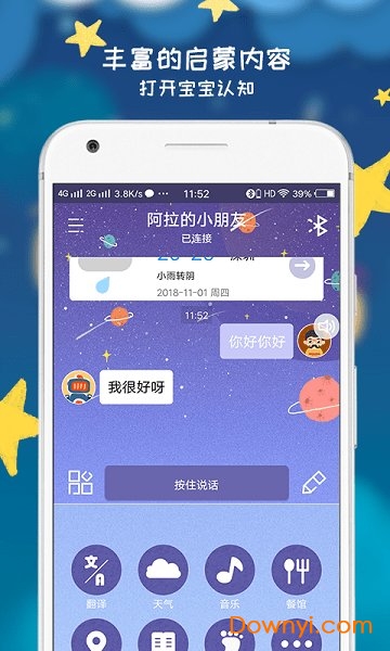 阿拉的小朋友是一款儿童智能早教启蒙app,配套阿拉的小朋友儿童智能早教玩具智能音箱使用。拥有海量优质内容,有儿童英语、故事、儿歌、国学、诗词、算术、翻译等诸多儿童早教内容,是0-6岁宝宝早教启蒙的好选择;囊括了教育、娱乐、工具、生活服务、电话短信等多项来自阿拉的、搜狗和飔拓多方提供的智能技能。