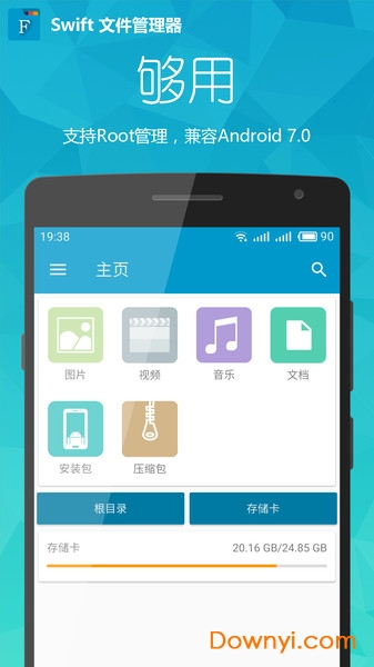 遵循materialdesign的轻快的android文件管理器,实现了基本的文件操作(创建、删除、复制、剪切、重命名、分享等),支持root操作,可以打开任意类型的文件,不包含任何广告及推广,仅仅请求文件系统的权限,支持android8.0,无任何后台服务。