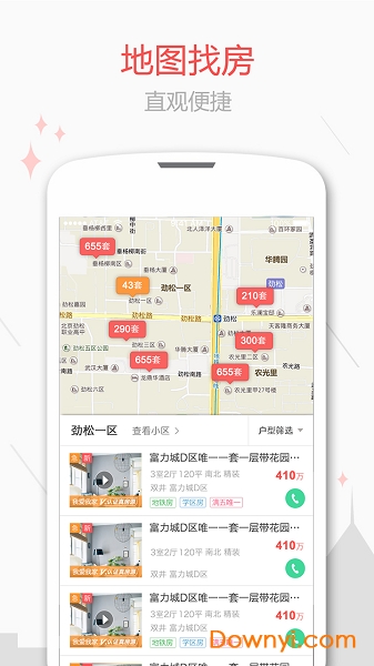 便捷易用的个性化找房体验,定位查找附近优质房源、二手房/租房/小区等多种选房维度随心切换、房源搜索结果匹配购房需求智能排序展示。