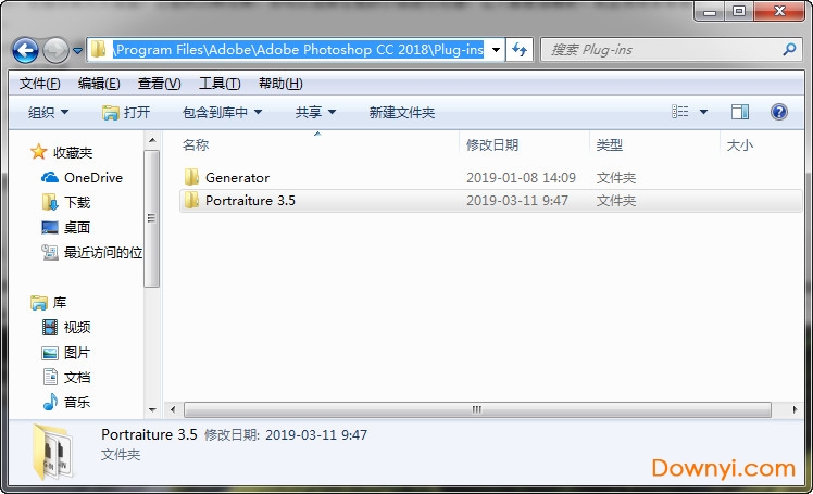 2、将“portraiture 3.5”文件夹复制到ps安装的plug-ins目录下