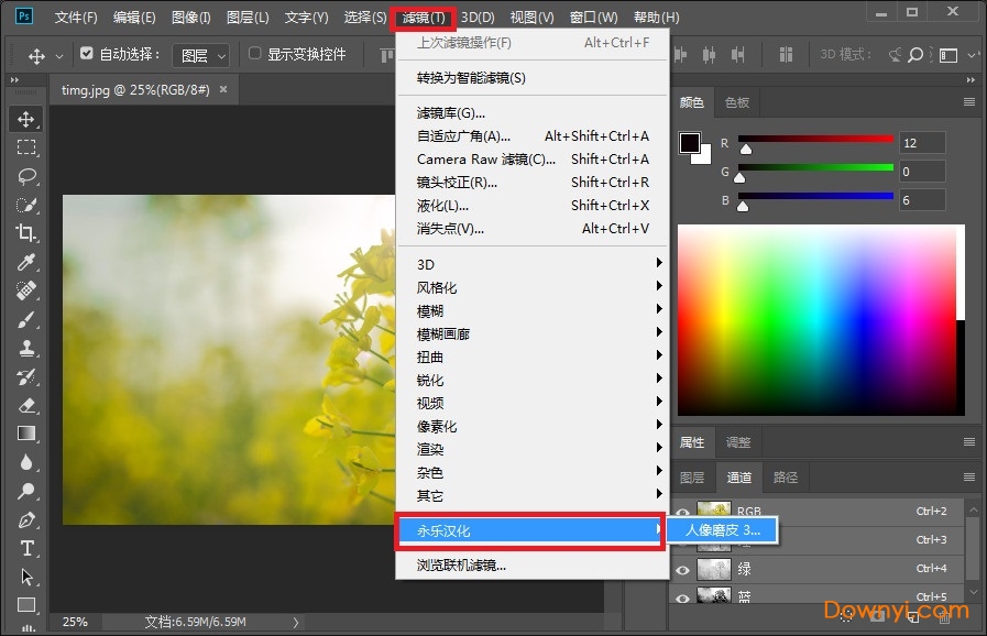 1、打开photoshop,滤镜—永乐汉化—人像磨皮即可打开插件