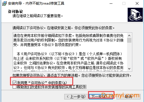 1、首先在本站下载内存不能为read修复工具软件包,完成后运行exe文件,进入安装向导界面,点击下一步