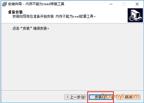 3、进入内存不能为read修复工具准备安装界面,点击安装