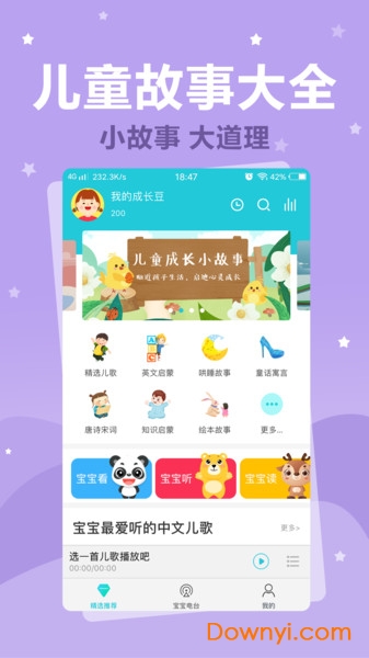 精选上千首儿歌、故事、动画、国学、英语、绘本故事等优质内容!