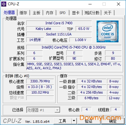 在处理器部分,cpu-z上面显示着的就是这颗处理器的基本信息,比如说这颗名字为intel core i3-4130,同时也我们平时所购买的cpu的型号。第二个是代号,指的是这颗cpu所采用的架构和核心名称,比如intel方面近五代的架构分别为“iny bridge”、“haswell”、“boardwell”、“skylake”和最新的“kaby lake”;amd方面则复杂的多,主要各个城市的风景为主。比如说fx-8350的代号为“zambezi(赞比西河)”,而fx-9590的代号为“vishera(维拉舍河)”,a10-7870k的代号则是”godavari(戈达瓦里河)”。