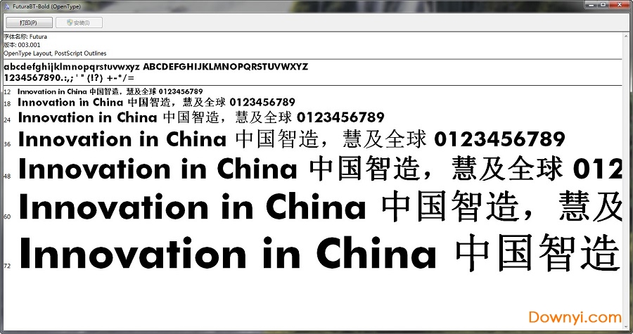 鼎鼎大名的几何体,遵循几何形式来制作,笔画粗细对比小,极具现代感,不适合作为正文字体,与其风格类似的还有著名的eurostile字体。