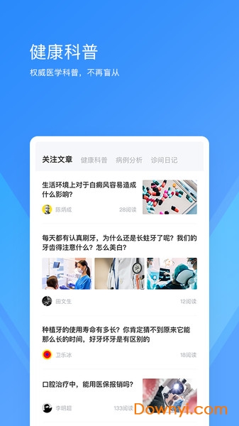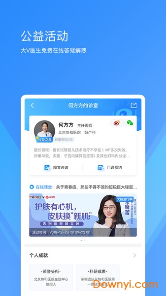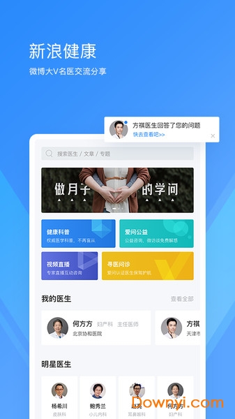 国内顶尖互联网健康平台,汇集了近10万微博健康大v及爱问医生认证团队,累计服务2000万+患者。服务包括:健康问诊、公益活动、健康普、专家访谈等。分别有内科、外科、儿科、皮肤科、口腔科等25+科室分类,是中国互联网健康的引领者,旨在让健康问诊变得更便利。