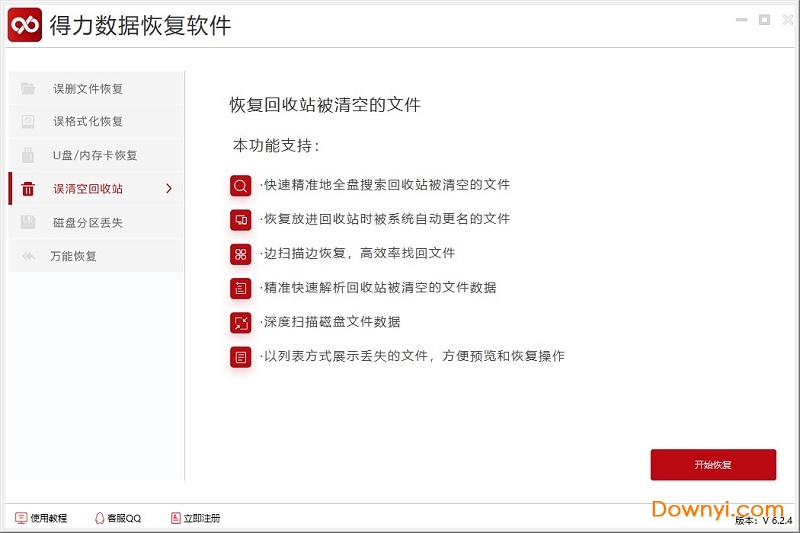 1、打开软件,点击误清空回收站,然后点击开始恢复