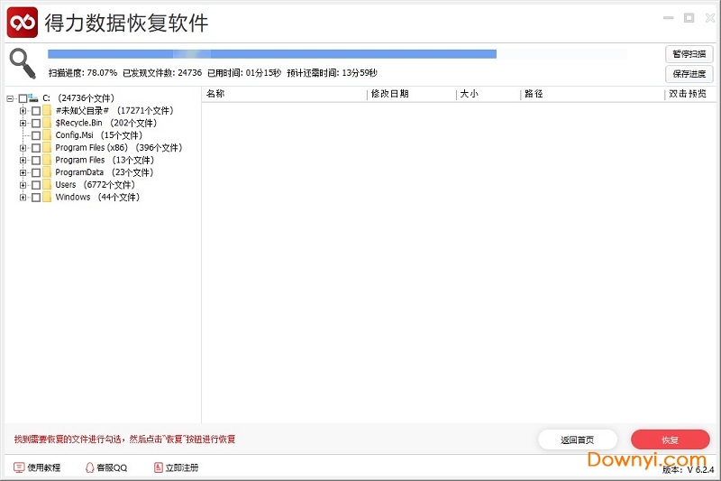 得力数据恢复软件是一款特别强大的电脑数据恢复工具,它支持多种数据的恢复,能够精准快速的扫描,还能够将回收站里面清空的东西都找回来,让大家再也不用担心删错东西了,关键是免费使用,需要的话快来体验吧。