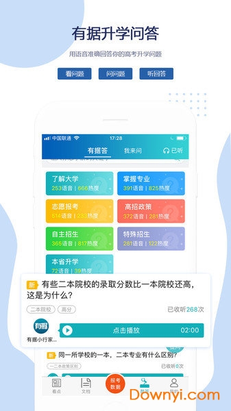 高考升学会遇到很多问题,我们通过有据答栏目用语音收听的方式认真有效的回答大家的“了解大学”,“掌握专业”,“志愿报考”,“高招政策”,“自主招生”“特殊招生”等方面的问题,每个回答我们一定做到认真有效!