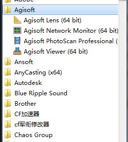 1、由于用户都是默认安装,所以启动程序需要在开始菜单查找,一般在agisoft文件夹中,然后双击“agisoft photoscan professional (64 bit)”即可打开程序