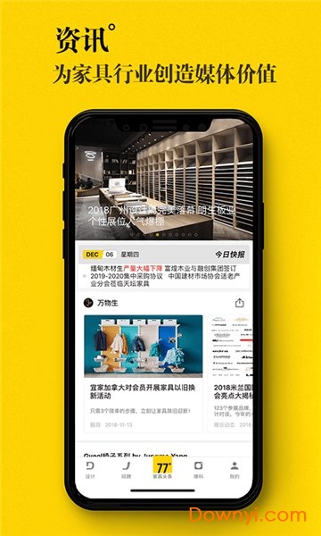 77度家具头条手机版是一款家居行业的资讯软件,借助行业资源和大数据,以项目招标、招聘求职、家居展会、头条资讯等功能为一体,致力于打造一站式的行业服务平台,欢迎到当易网下载使用!