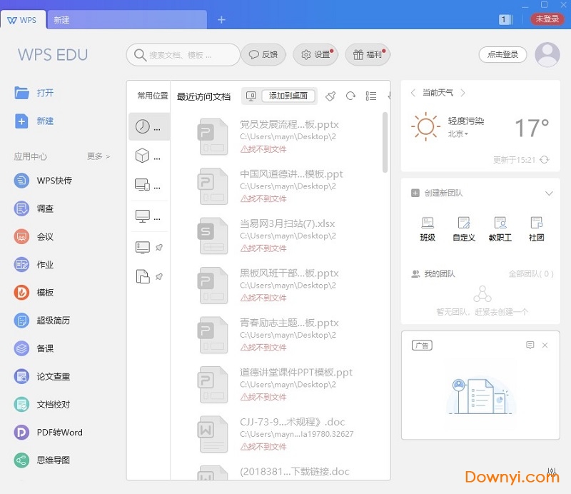 团队——wps云文档支持团队创建,可以按照班级、社团、校园等类别随意创建团队,方便课件、作业、资料的存储、共享、管理以及成员操作权限控制