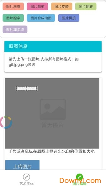 可以将自定义文字生成多种字体的小工具,界面比较的简洁,支持的艺术字体包括华康娃娃、经典细空、方正剪纸以及汉仪白棋、汉仪柏青等多种选择,除了支持艺术字体之外,还支持图片编辑功能,拥有图片压缩、图片剪裁以及旋转和水印添加、图片合成动图以及添加等等,下拉有详细的操作步骤以及讲解。