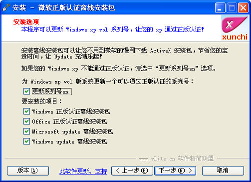 1、本程序可以自动给 Windows xp vol 更改系列号,让不能通过正版认证的电脑立刻就可是通过正版认证,轻松的安装 ie7、wmp11、到微软网站上下载正版增值补丁和程序。(不用担心本程序给您的系统更改了无效的sn,如果 sn 不符合,是不会更新sn 的!)