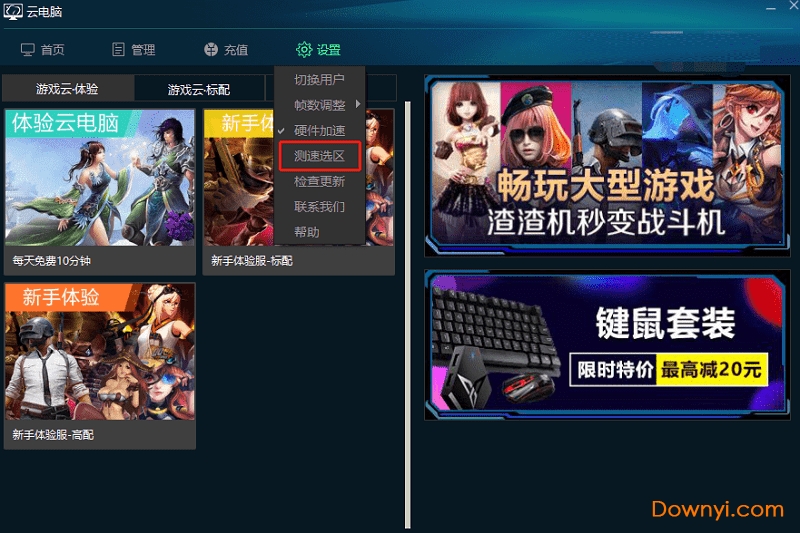 玩家需要在使用云电脑之前在界面中点击【设置】选择【测速选区】