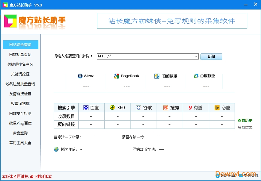 魔方站长助手免费版是一款专门为站长打造的多功能辅助工具,用户可以在上面轻松挖掘出各种应用搜索指数的关键词,查询到各个网站的详细信息等等,让工作变得更加的轻松。需要的朋友快来体验吧!