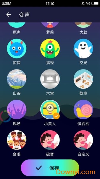7.多种变声效果可选:爷爷、大叔、萝莉、小孩、幽灵、机器人......变声时只需轻轻一点,让你成为自带bgm的潮人。