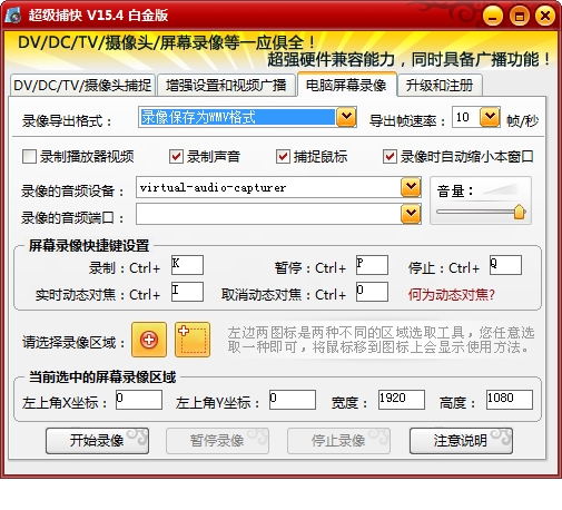 导出WMV格式加入了几乎所有电脑的全屏高清分辨率的录制支持,让您录制屏幕、游戏或视频更随心所欲!
