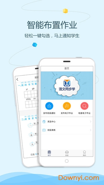 语文同步学-教师端:专为教师提供的语文教、学工具,重点服务于中、小学生语文课堂同步辅导,秉承“为老师减负”的宗旨,老师可通过手机、电脑一键布置作业;通过教材全解实现课堂备课;系统自动批阅,生成学生作业完成率、正确率、排名、错题分析,以及知识点掌握情况、大数据学情分析,帮助教师随时掌学生学习情况,针对性辅导,提高教学效率。