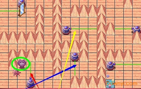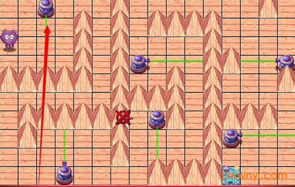 继续移动小精灵,这里需要注意,如图,需要将小精灵移动到绿色的区域,才放置相应的镜子道具,容易忽略这点则任务宣告失败,最终小精灵则可到达安全处