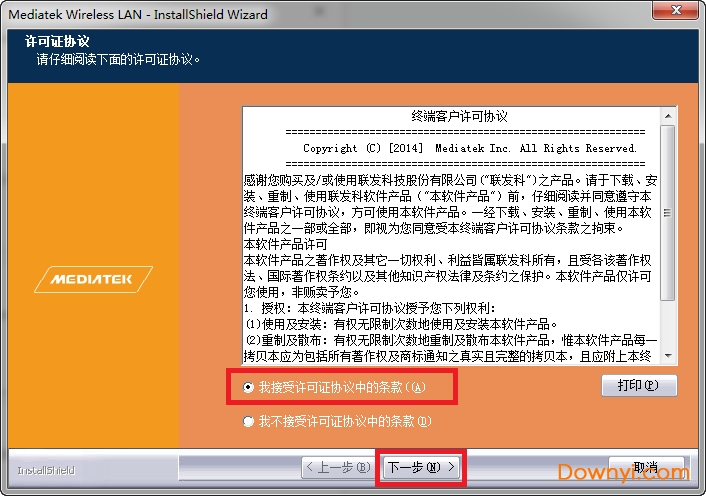 2、选择接受许可协议,点击下一步