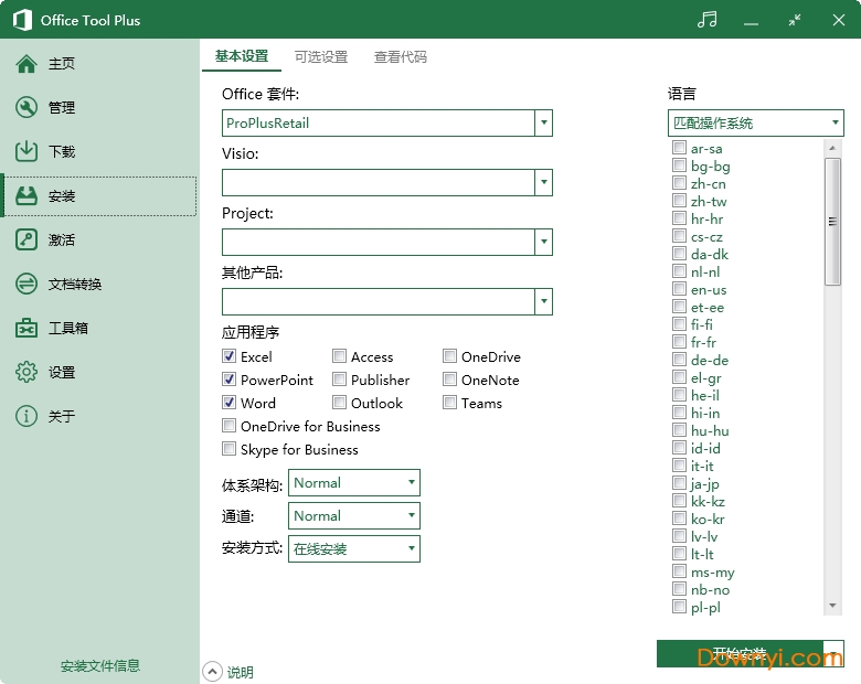 默认配置好安装设置,普通用户只需点击即可开始安装。同时我们为高级用户开设了多种安装选项,无论是安装前亦是安装后都可以轻松配置 office。