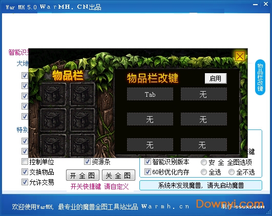 相当不错的魔兽全图作弊软件;它对许多的功能进行快速的支持,也可轻松的即可完成对单位、隐身、信号的显示设置,只要是您需要的功能,都可以快速的进行自定义的设置;也支持对背包的快捷键进行设置,还可以完成鼠标的锁定,并且一键的即可屏蔽各种win键。