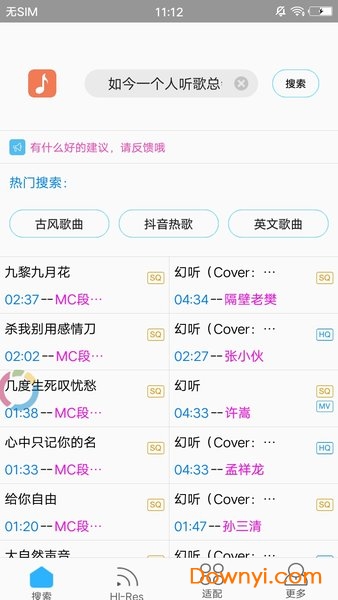 歌词适配是款音乐下载工具,你可以通过歌词去快速的搜索歌曲,对于那些只知道一两句歌词不知道歌名的搜索是很方便的,可以选择在线听或者是一键下载,支持的音频资源丰富,界面无任何的广告,多地区音频随便下载,还有mv在线播放等,拥有无损等多个音质选择。