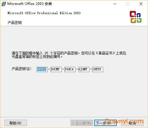 1、在本站下载新版office2003安装包,双击运行;弹出安装界面,点击安装,输入注册码,如图;