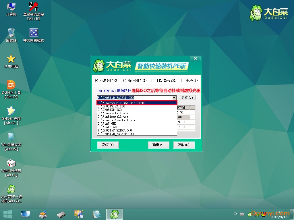 3、自定义启动u盘装系统加载,只需在大白菜官网或其他网上找到各种功能的pe或者其他启动系统,只需要制作时添加一下,自动集成到启动u盘装系统中。
