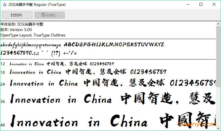 4.右键点击选择,预览可以看见字体的格式,点击安装即可安装字体