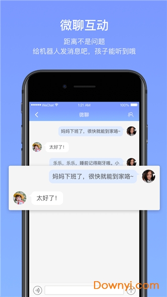 家庭成员实时互动。全程记录孩子与机器人的日常对话,时刻了解孩子的状况。通过微聊组传送语音或文字。