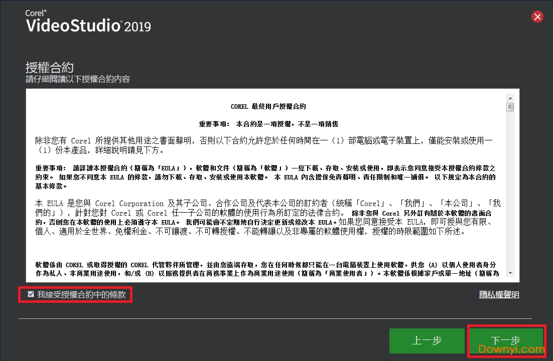 3、勾选我接受授权合约中的条款,点击下一步