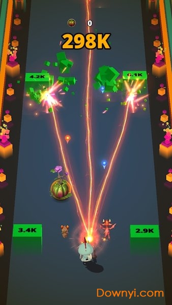 二次元卡通风格的休闲益智手游,玩家需要控制自己的q版角色在道路上前进,使用武器摧毁阻挡你的障碍物,将障碍物的数字归零即可通过,不断的前进更远的距离获得更高的分数,提升自己的武器帮助自己更好的闯关吧。