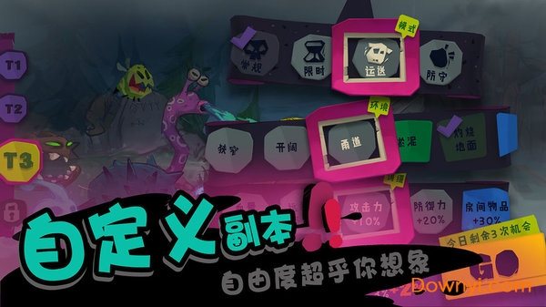 副本众多,并且因为这是一款带有build的游戏,玩家是可以自己选择副本的里的内容,包括副本的地形,通关条件,使用的地图等,在这里大家可以制作自己喜欢的副本;